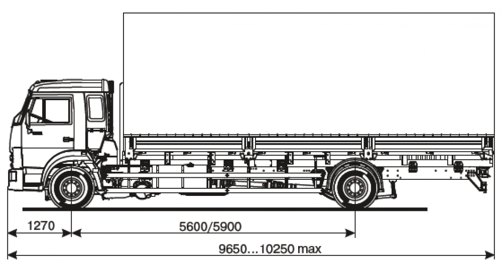 Платформа стальная, с откидными боковыми и задними бортами, в зависимости от комплектации, оборудуется каркасом и тентом